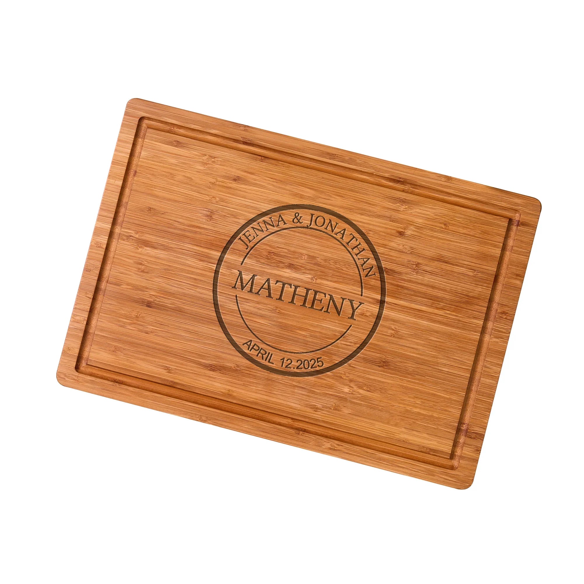 Bamboo Cutting Board Custom Anniversary Name Design